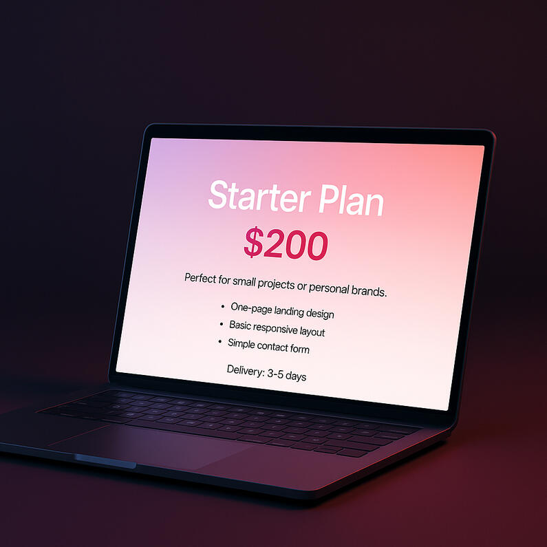 Here’s what we can help you with:Web Design (UI/UX)Modern, user-focused website design that looks stunning and works seamlessly across all devices.Website Development / SetupFrom design to launch — we build fast, reliable, and responsive websites tailored to your brand.Branding & IdentityWe create unique visual identities that reflect your values and make your brand instantly recognizable.Landing PagesHigh-converting, beautifully designed landing pages that engage users and drive results.UX Audit / RedesignWe analyze, refine, and redesign existing websites to improve flow, clarity, and user experience.